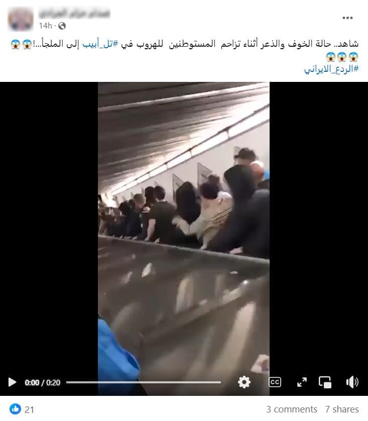 إثر ذلك تداول ناشطون على فيسبوك مقطع فيديو يدعون أنه يظهر مشاهد أثناء تزاحم المستوطنين للهروب‎ إلى الملاجئ،