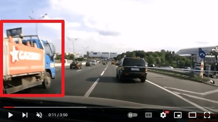 هذا ويظهر واضحًا في بداية المقطع شاحنة محملة بأسطوانات قبل أن تتدهور على الطريق وتبدأ الأسطوانات بالانفجار،
