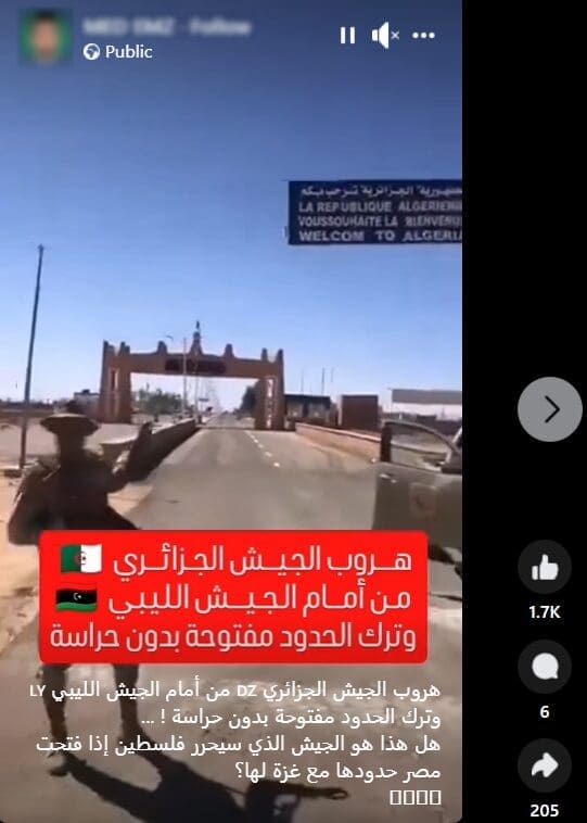 هذا المقطع يصور دورية لحرس الحدود الليبي في معبر الدبداب عام 2023، وليس لمناوشات بين الجيش الليبي والجزائري مؤخرًا