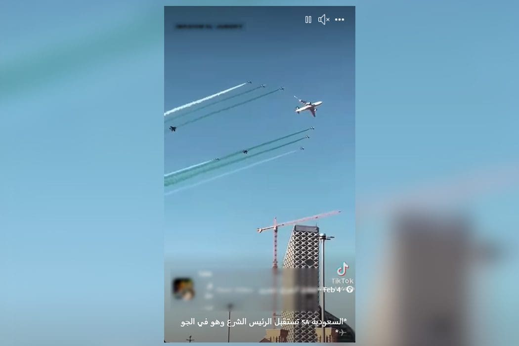 هذا المقطع يصور عرضًا جويًا بمناسبة استضافة السعودية كأس العالم 2034، ولا يصور مشاهد من استقبالها أحمد الشرع عقب زيارته السعودية مؤخرًا