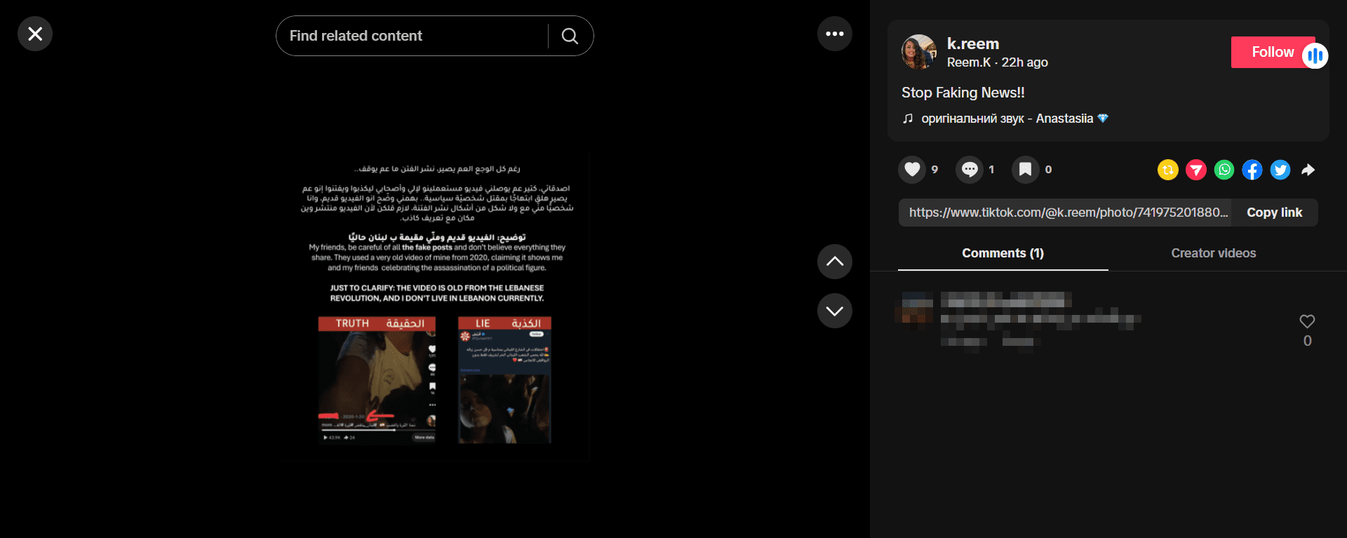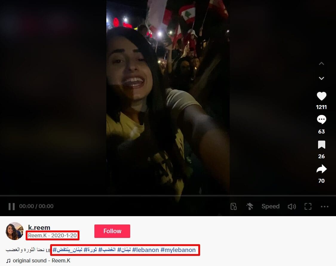 حيث نشر المقطع ذاته حساب عبر منصة تيكتوك بتاريخ 20 يناير 2020، ويصوّر -بحسب الوصف- مشاهد من الثورة في لبنان،