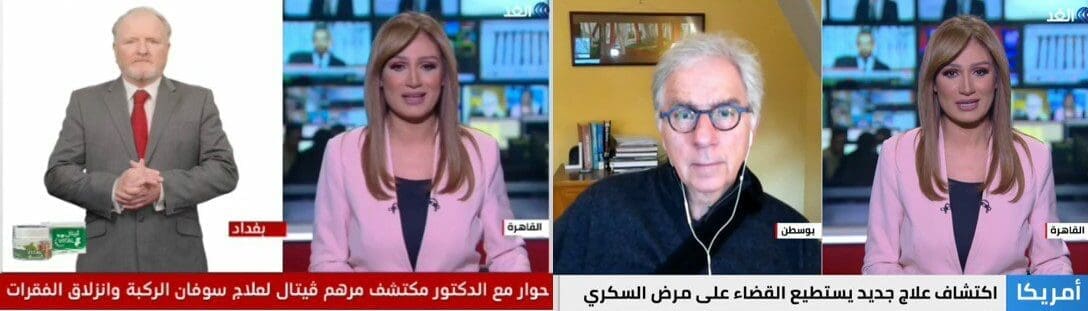 حيث في الحقيقة، كانت المذيعة ترحب بالأستاذ في جامعة هارفرد، والمدير المشارك لمعهد هارفارد للخلايا الجذعية “دوغلاس مليتون” الذي يعمل على تطوير علاج لمرض السكري بالخلايا الجذعية.