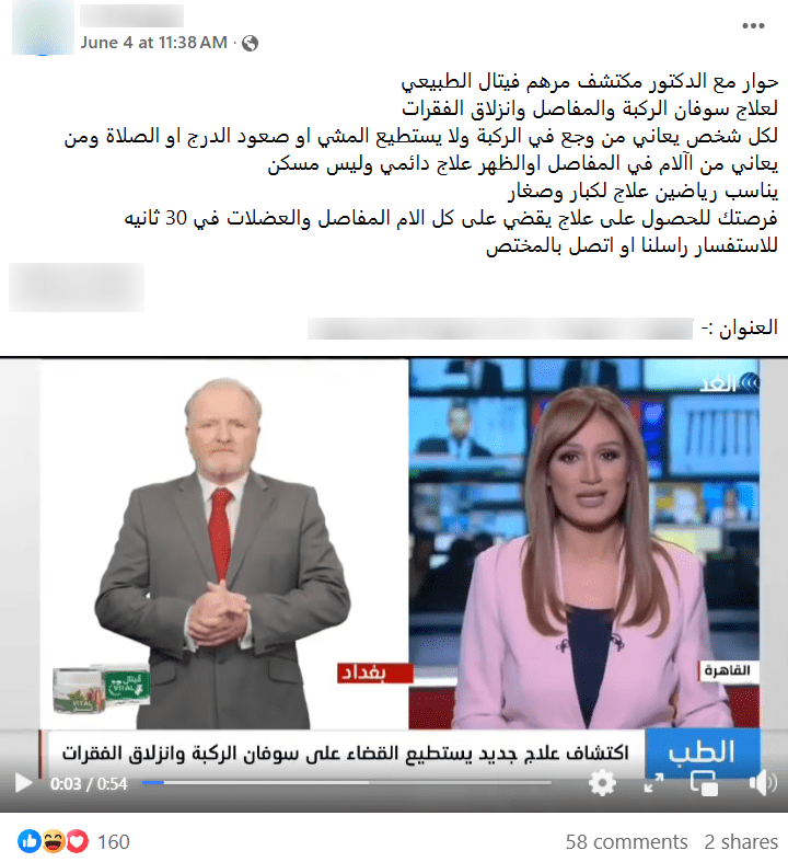 إقرأ أيضًا: هذه المقابلة مفبركة للترويج لمنتج يدعى أنه قادر على علاج آلام المفاصل وبناء المادة الغضروفية