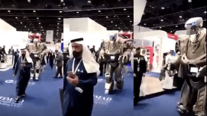 أرفق ناشر المقطع أن الروبوت يدعى “تيتان” وكان قد عرض في معرض الدفاع الدولي في أبو ظبي “أيدكس”،