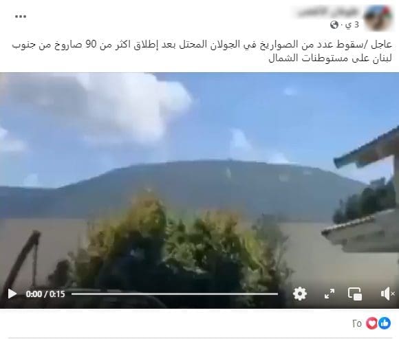 إثر ذلك تداول ناشطون على الفيسبوك مقطع فيديو يدعون أنه يظهر مشاهد لسقوط صواريخ في الجولان أطلقت من لبنان مؤخرًا،