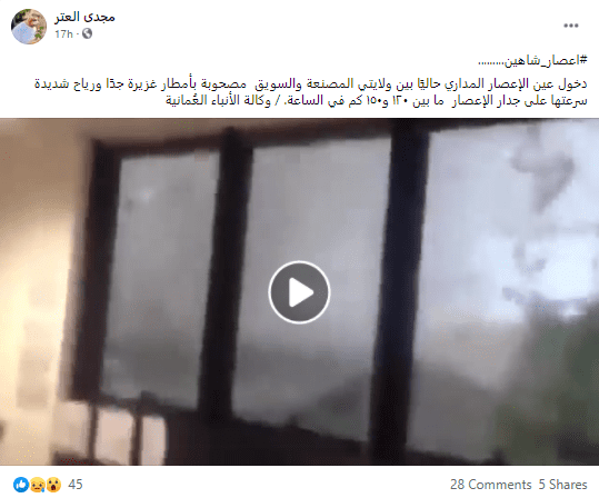 انتشر على مواقع التواصل الاجتماعي فيسبوك وتويتر مقطع فيديو يزعم ناشروه أنه يعود لإعصار شاهين الذي ضرب ساحل سلطنة عُمان صباح يوم الأحد،