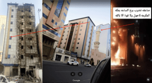 مما يؤكد أن المقطع لا يظهر حريقًا في برج الساعة في مكة، بل في مبنى بـ حي الجميزة،