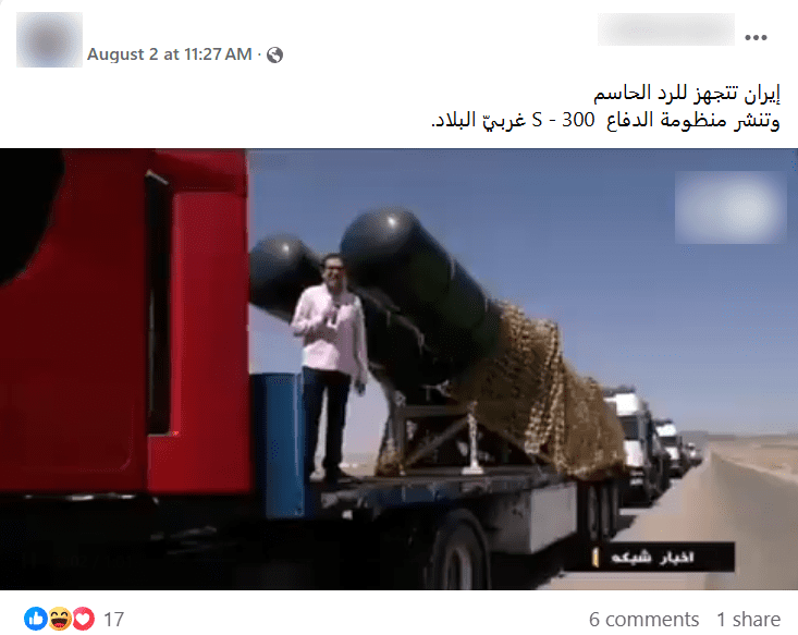 هذا المقطع متداول منذ عام 2016 لمنظومة الدفاع S 300ولا يصور استعداد إيران للرد على اغتيال هنية مؤخرًا