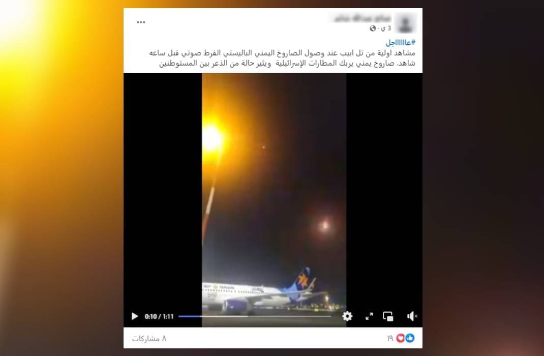 هذا المقطع لا يصور استهداف الحوثيين لتل ابيب مؤخرًا، بل هو لاستهداف مطار بن غوريون بصورايخ أطلقت من قطاع غزة عام 2021