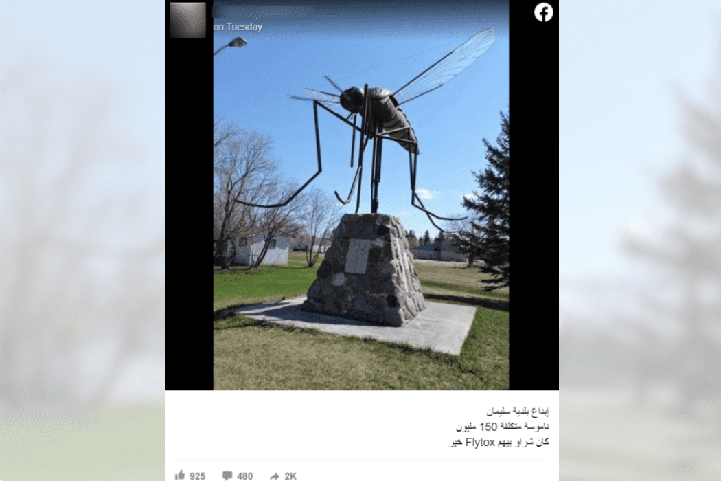 يتداول رواد مواقع التواصل صورة نصب لبعوضة عملاقة، ويزعم ناشروها أنه موجود في مدينة سليمان التونسية،
