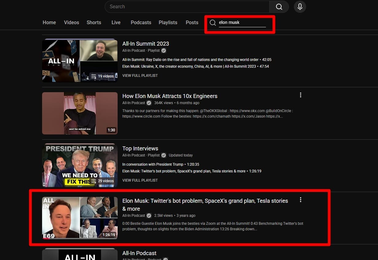 وباستكمال البحث بالكلمات الدلالية عبر قناة All-in Podcast على منصة يوتيوب، نقع على المقطع الأصلي الذي شارك فيه إيلون ماسك من بُعد بتاريخ 17 مايو 2022.