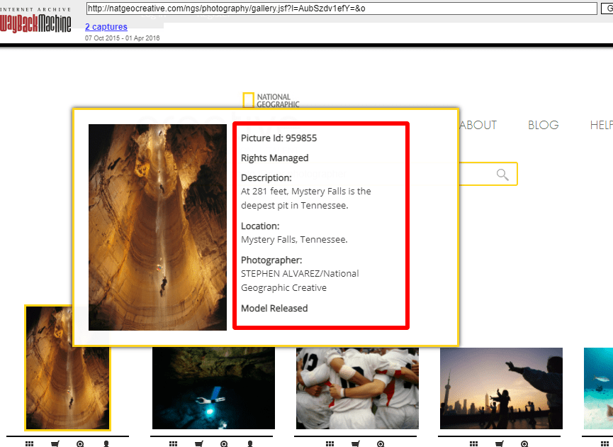 وبالرجوع إلى موقع National Geographic Stock الذي ذكر في تفاصيل الصورة، وجدنا الموقع قد تم إيقاف خدماته  هنــا،