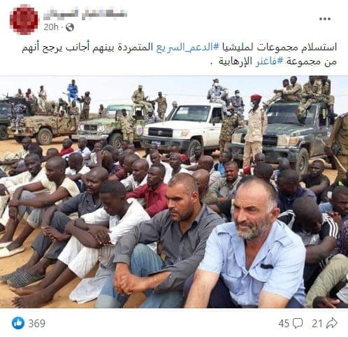 إثر ذلك تداول ناشطون على الفيسبوك صورة يدعي ناشروها أنّها تظهر استسلام مجموعة من المقاتلين لقوات الدعم السريع في السودان،