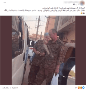 المرتزقة الروس يتجولون في شارع الوادي في ام درمان . نقاتل حاليا جيش من المرتزقة الروس والإيرانين والاوكران وسوف ننتصر بعزيمتنا والتمسك بقضيتنا باذن الله
