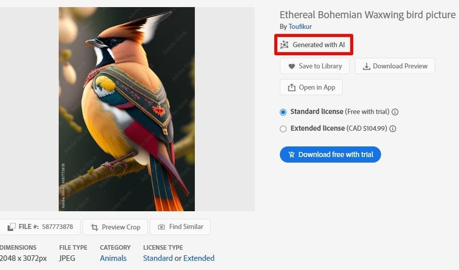 فيما بين أنها للطائر شمعي الجناح البوهيمي مولدة باستخدام الذكاء الصناعي.