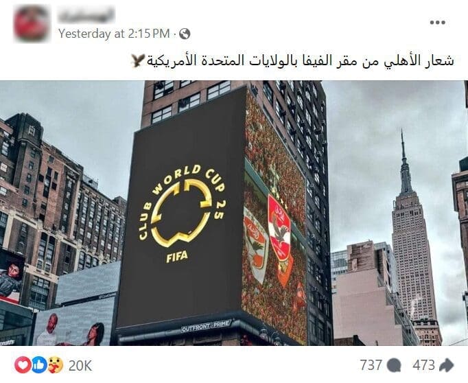 مما ينفى أن يكون المبنى الظاهر في صورة الادعاء يعود لمقر الفيفا في الولايات المتحدة.