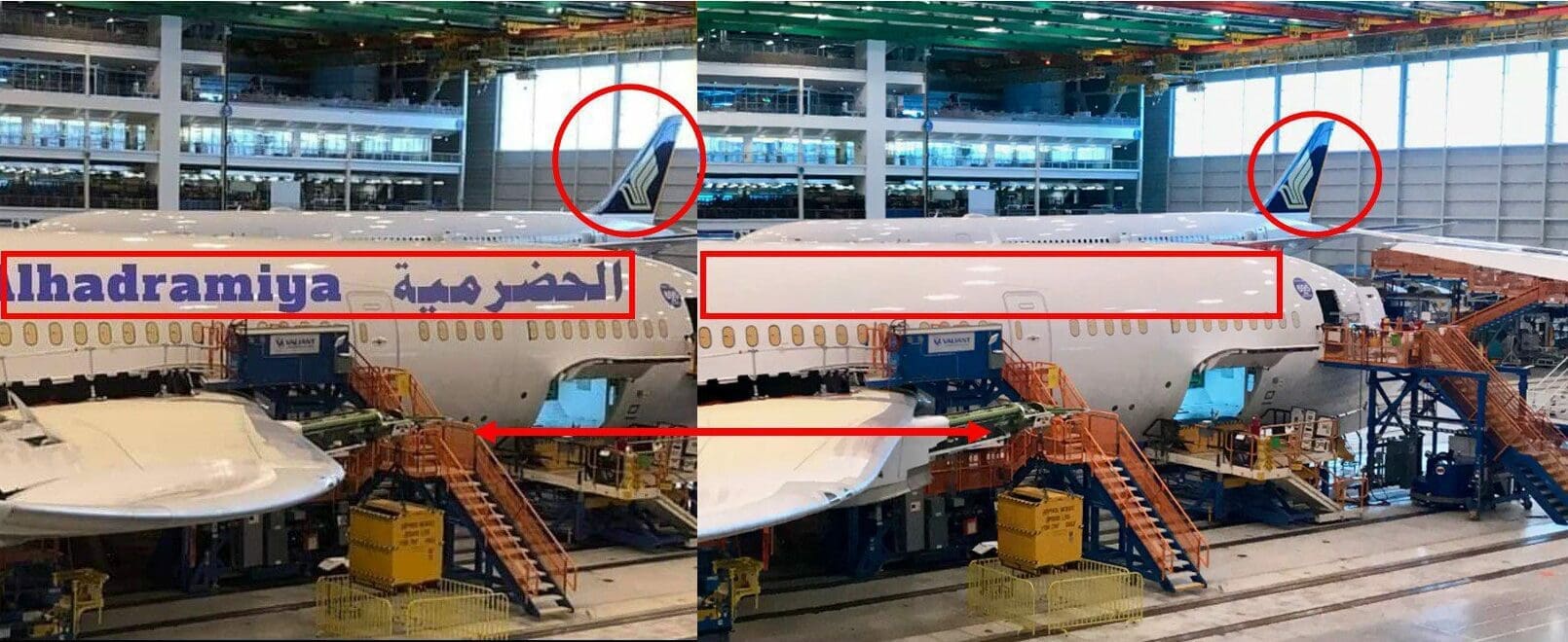 وكانت إحدى هذه الصور هي صورة كاملة ومماثلة لصورة الادعاء، لطائرة سكوت Scoot 787-9،