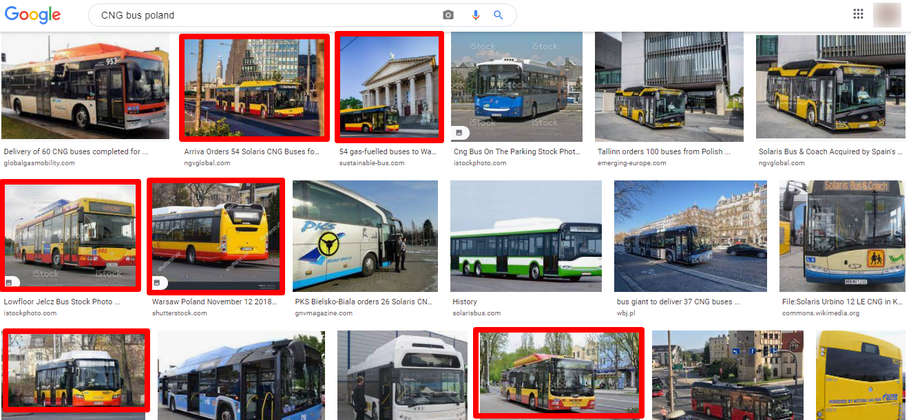 بالبحث عن الحافلات في بولندا يمكننا ملاحظة التشابه بين الحافلة من صورة الادعاء والحافلات التي تعمل في بولندا،