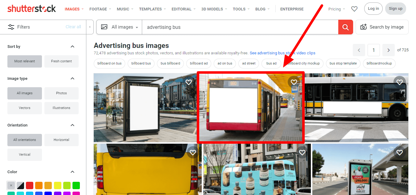 عثر فريق منصة فتبينوا على صورة الادعاء ذاتها في موقع shutterstock الذي نشرها بخلفية بيضاء جاهزة للتصميم تحت العنوان: لوحة بيضاء على ظهر الحافلة للإعلان