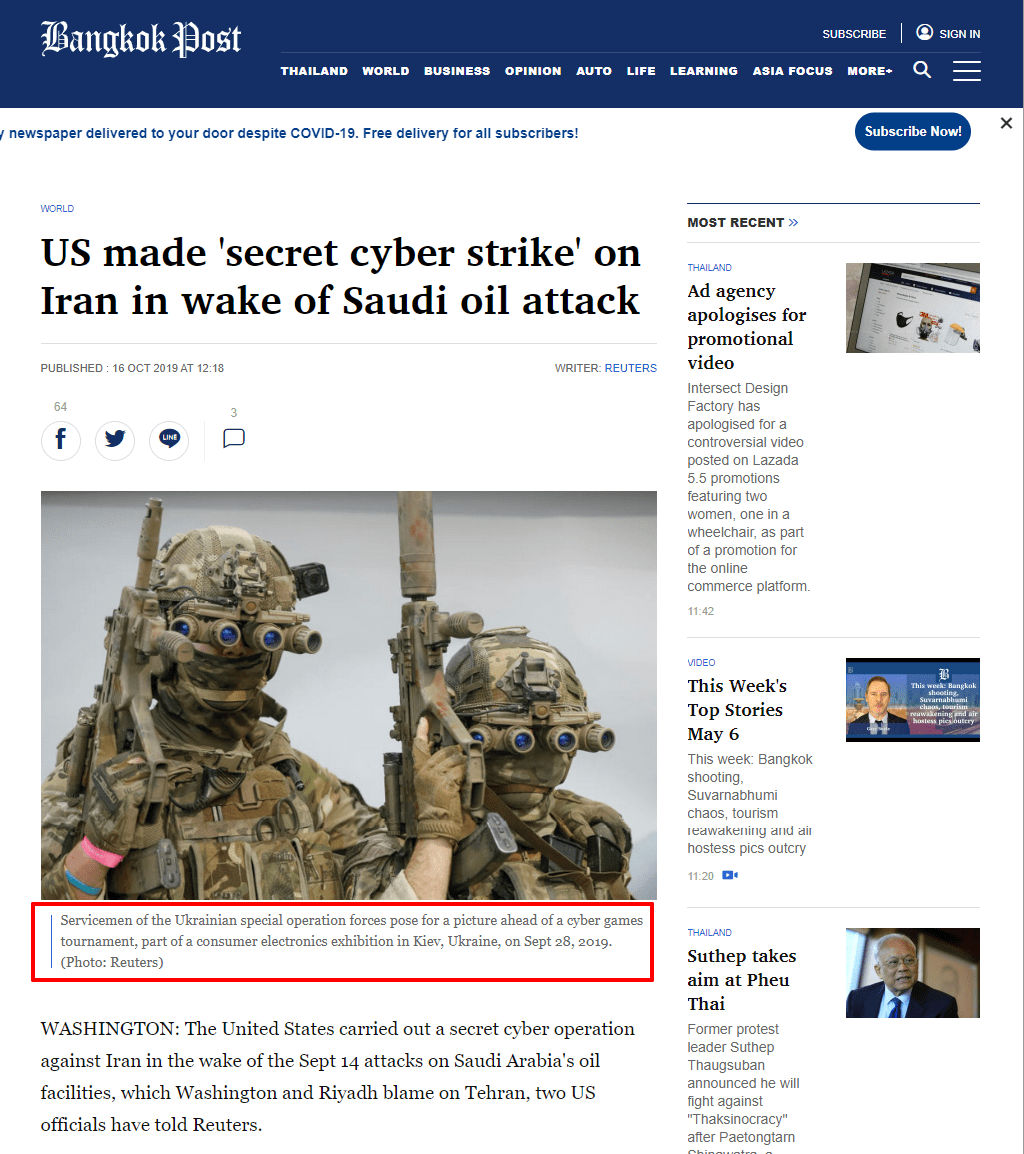 عثر فريق منصة فتبينوا على صورة الادعاء ذاتها في صحيفة “بانكوك بوست” مرجعة حقوق الصورة إلى وكالة الأنباء رويترز،