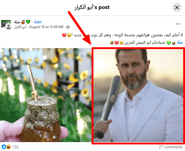 أرشد البحث العكسي عن الصورة في محرك غوغل إلى الصورة ذاتها لكن بحجمها الكامل على حساب في منصة الفيسبوك نُشرت بتاريخ 16 اغسطس 2025،