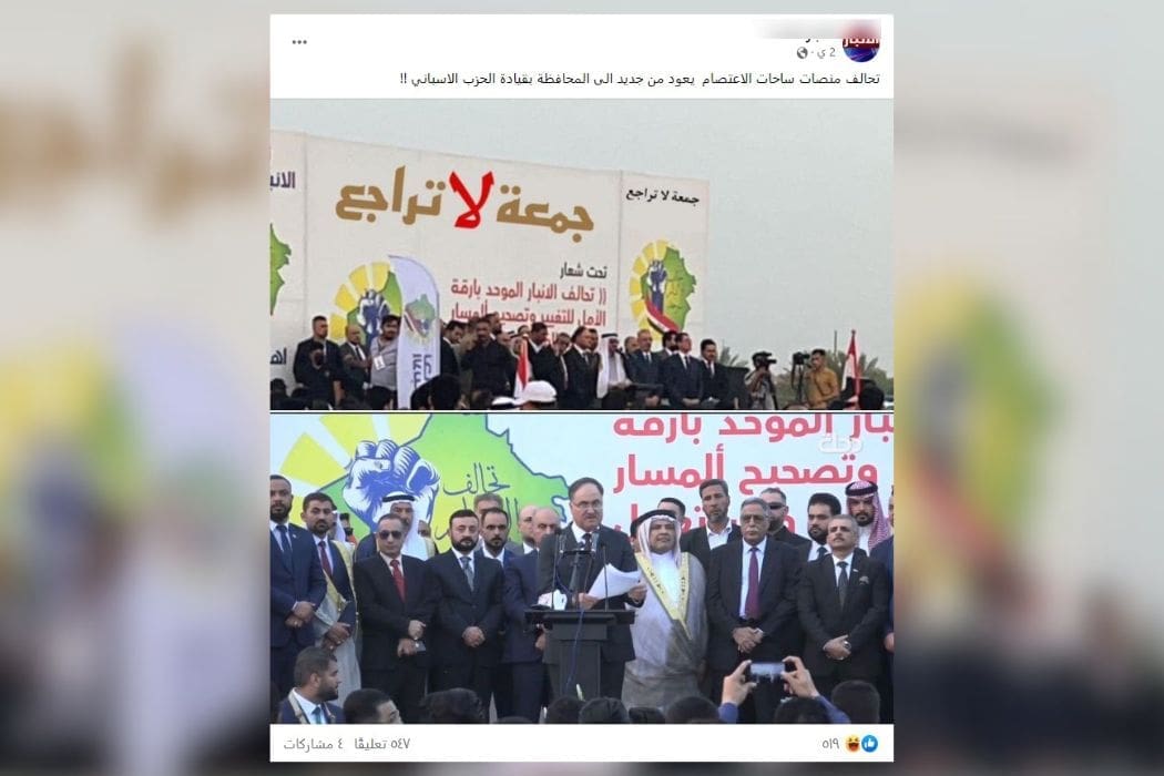 مطابقة صورة الادعاء – إلى اليمين – مع صورة نشرتها إحدى المواقع المحلية لمؤتمر “تحالف الأنبار الموحد”