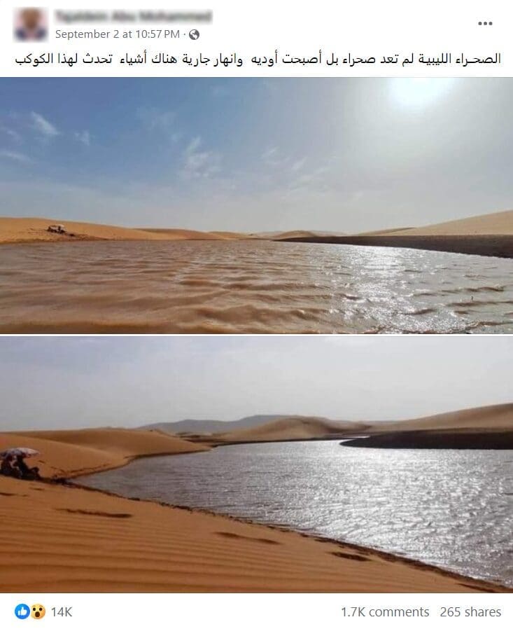 هذه الصور تعود لبحيرة في منطقة العين الصفراء في الجزائر، وليست في ليبيا