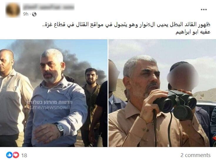 هذه الصور ليحيى السنوار قديمة، ولا تبين ظهوره في غزة حديثًا