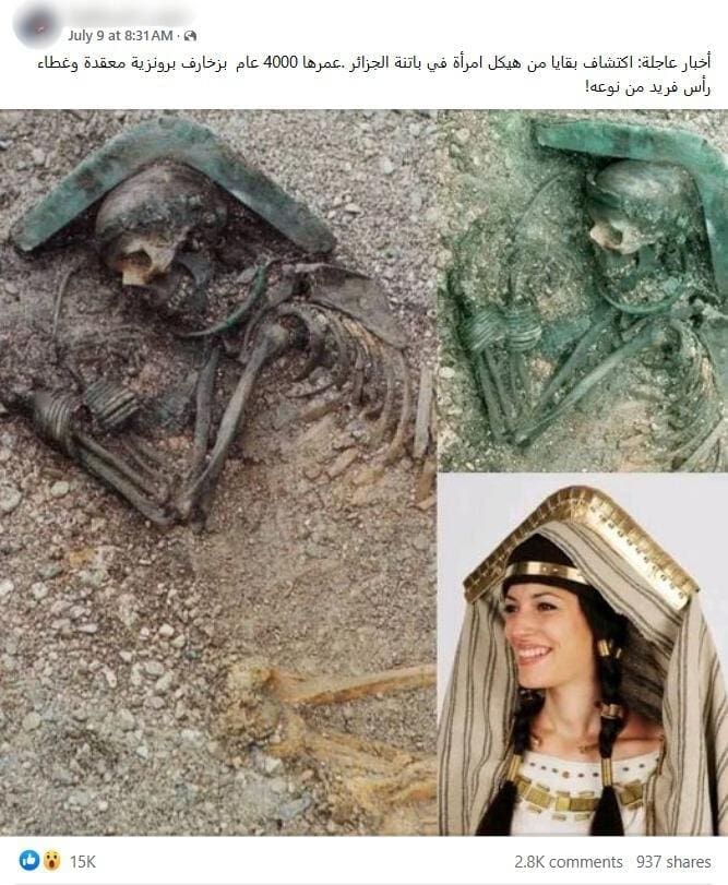 أخبار عاجلة: اكتشاف بقايا من هيكل امرأة في باتنة الجزائر .عمرها 4000 عام بزخارف برونزية معقدة وغطاء رأس فريد من نوعه!