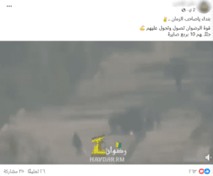 في هذا السياق، تناقل ناشطون على مواقع التواصل فيديو يدعون أنه يوثق عملية نفذتها وحدة الرضوان التابعة لحزب الله ضد عناصر من الجيش الإسرائيلي على الحدود اللبنانية،