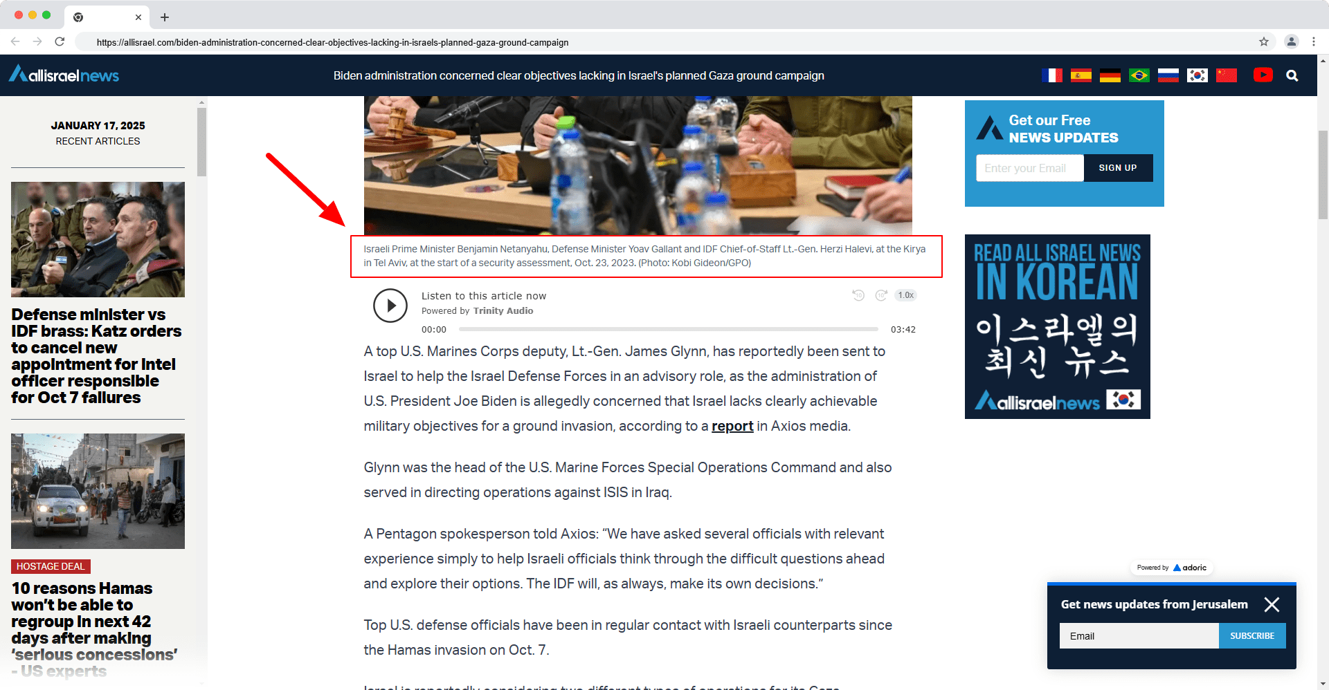 باستكمال البحث بهذه التفاصيل، تبيّن أنه كان قد نشر حساب رئاسة الوزراء الإسرائيلي على منصة إكس مقطع فيديو يظهر نتنياهو، غالانت، وهاليفي من اللقاء ذاته بتاريخ 23 اكتوبر 2023، ويظهر فيه جميع الحاضرين في اللقاء هنا، إلا أن أحمد الشرع لم يظهر من بين الحضور.