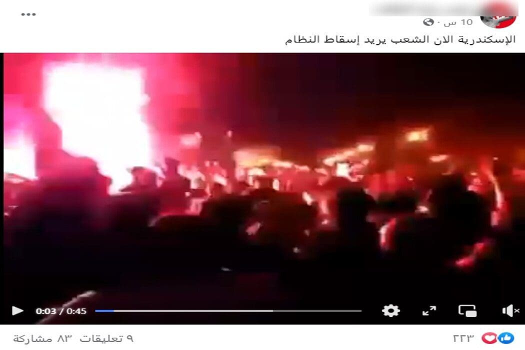 تداول ناشطون على فيسبوك مقطعًا يزعمون أنه يصور تظاهرة تطالب بإسقاط النظام في مدينة الإسكندرية حديثا،