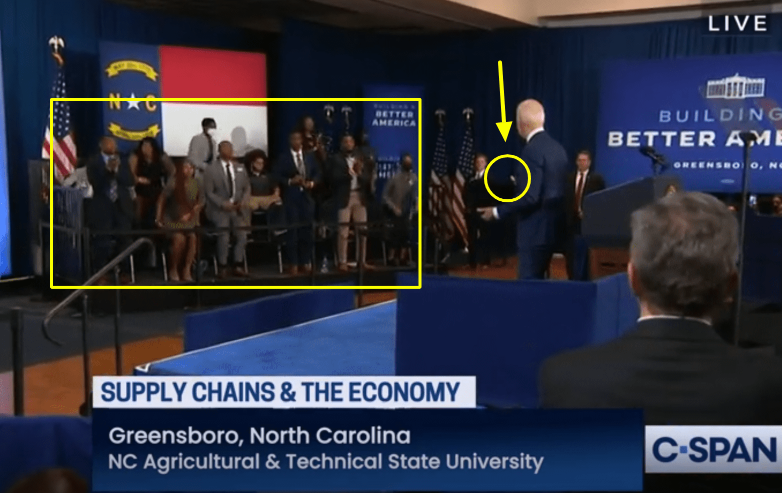 هذا أيضًا ما أكدته مشاهد أخرى ملتقطة من زوايا مختلفة لخطاب جو بايدن،