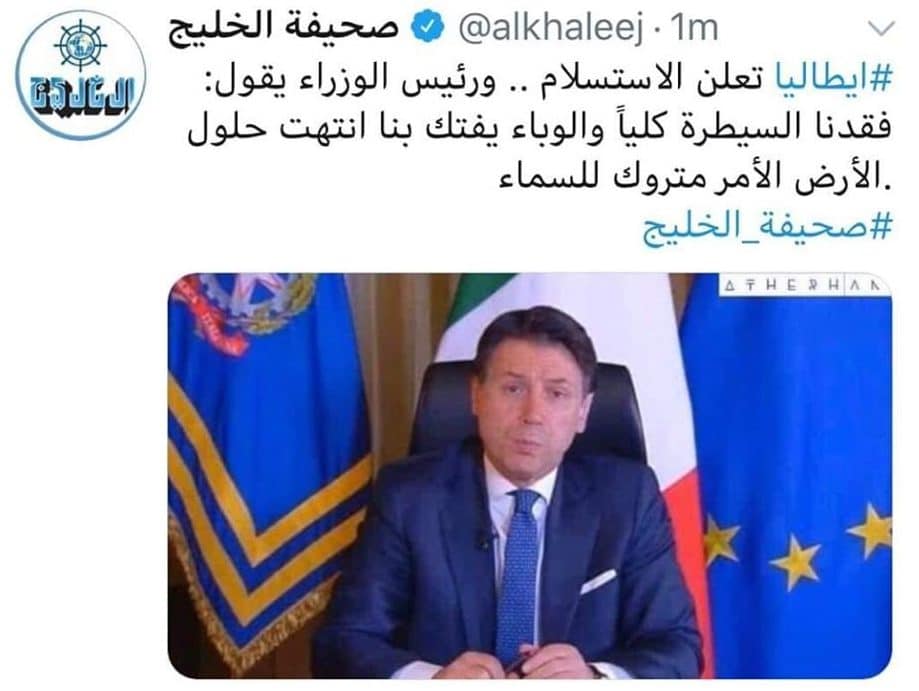 انتهت حلول الأرض الأمر متروك للسماء .. تصريح مزيّف منسوب لرئيس وزراء إيطاليا