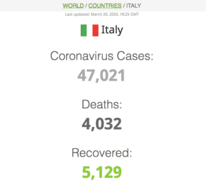 تتصدر الآن إيطاليا أكثر عدد الوفيات والاصابات بفيروس كورونا ، حيث وصلت حتى آخر تحديث لهذا المقال 20 مارس 2020