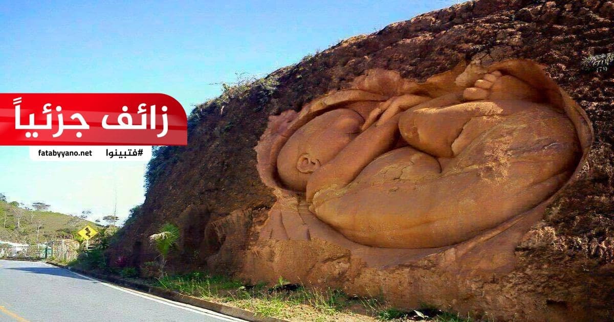 صورة جنين منحوت بباطن جبل عبرة للمتهورين بالقيادة