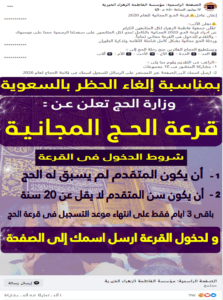 إعلان عاجلقرعة الحـج المجانية للعام 2020