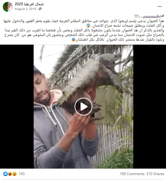 هذا المقطع مفبرك والحيوان الذي يظهر في مشهد الفيديو ليس “ويجو”