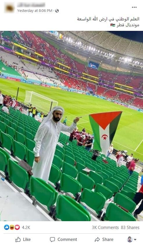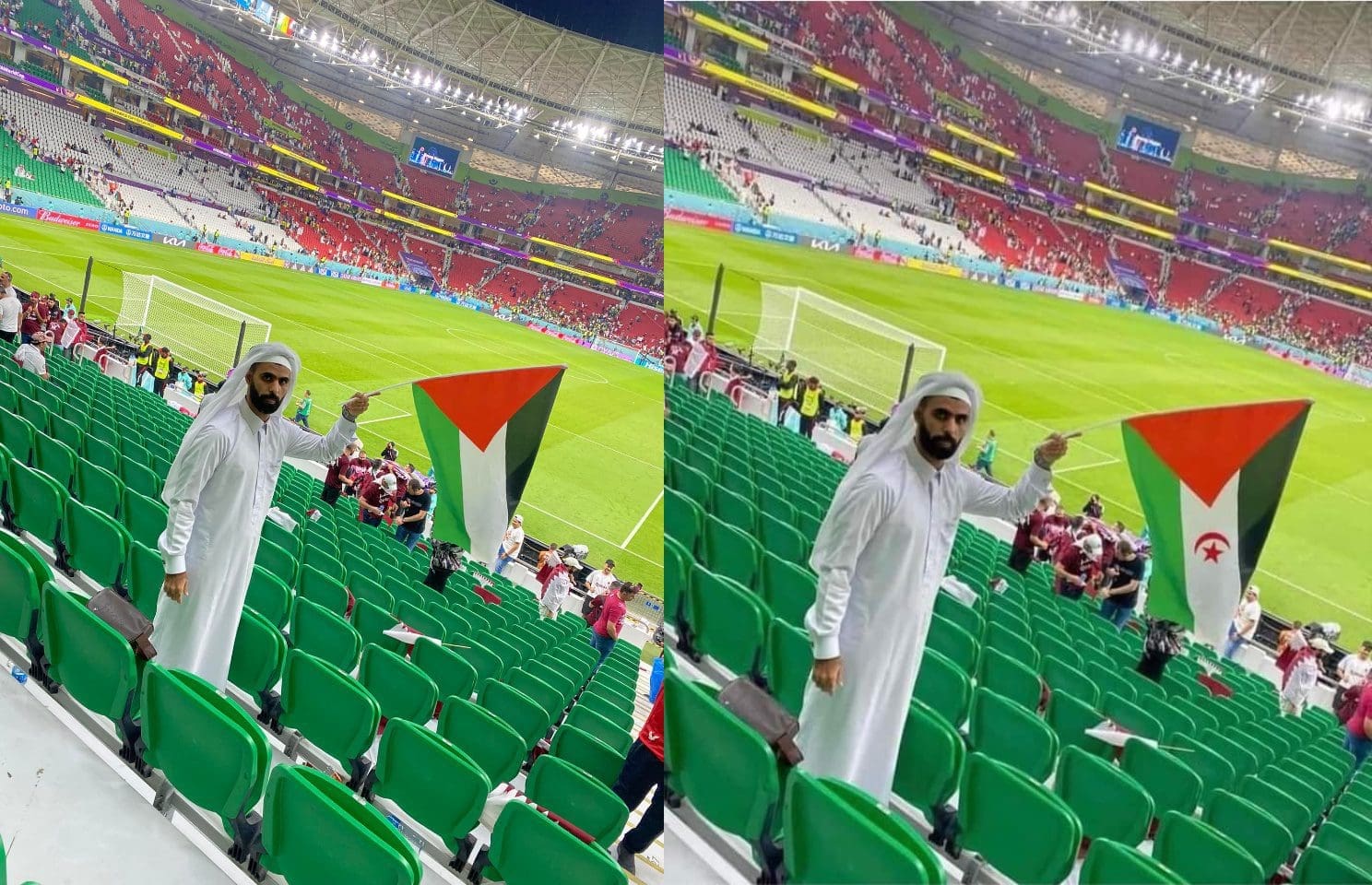 يرفع ما يعرف باسم علم الصحراء الغربية في أحد ملاعب المونديال،