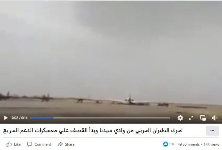 في أعقاب ذلك، تداول ناشطون مقطعاً يدعى أنه لتحرك الطيران الحربي في السودان،