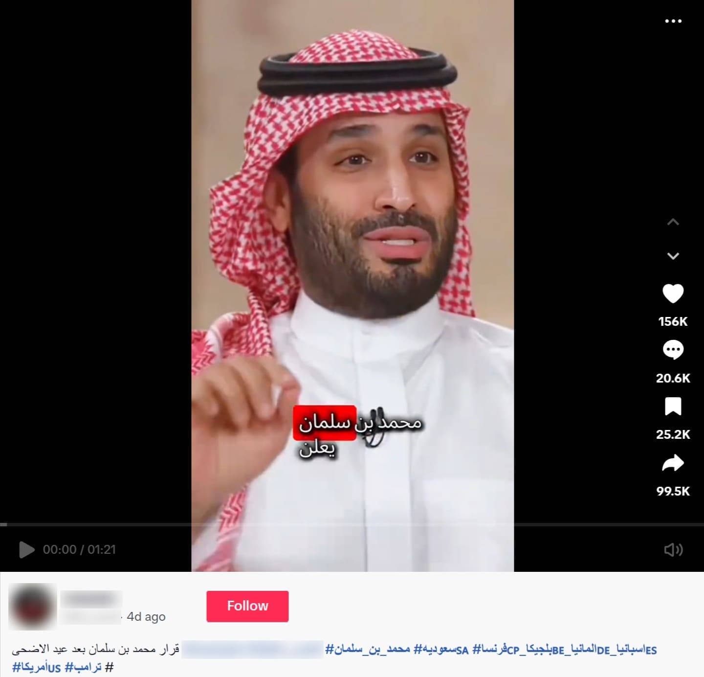 أرشد البحث بالكلمات الدلالية عن المشاهد الظاهرة في المقطع على منصة يوتيوب، إلى مقطع فيديو للقاء ولي العهد الأمير محمد بن سلمان بقناة السعودية بتاريخ 28 أبريل 2021.