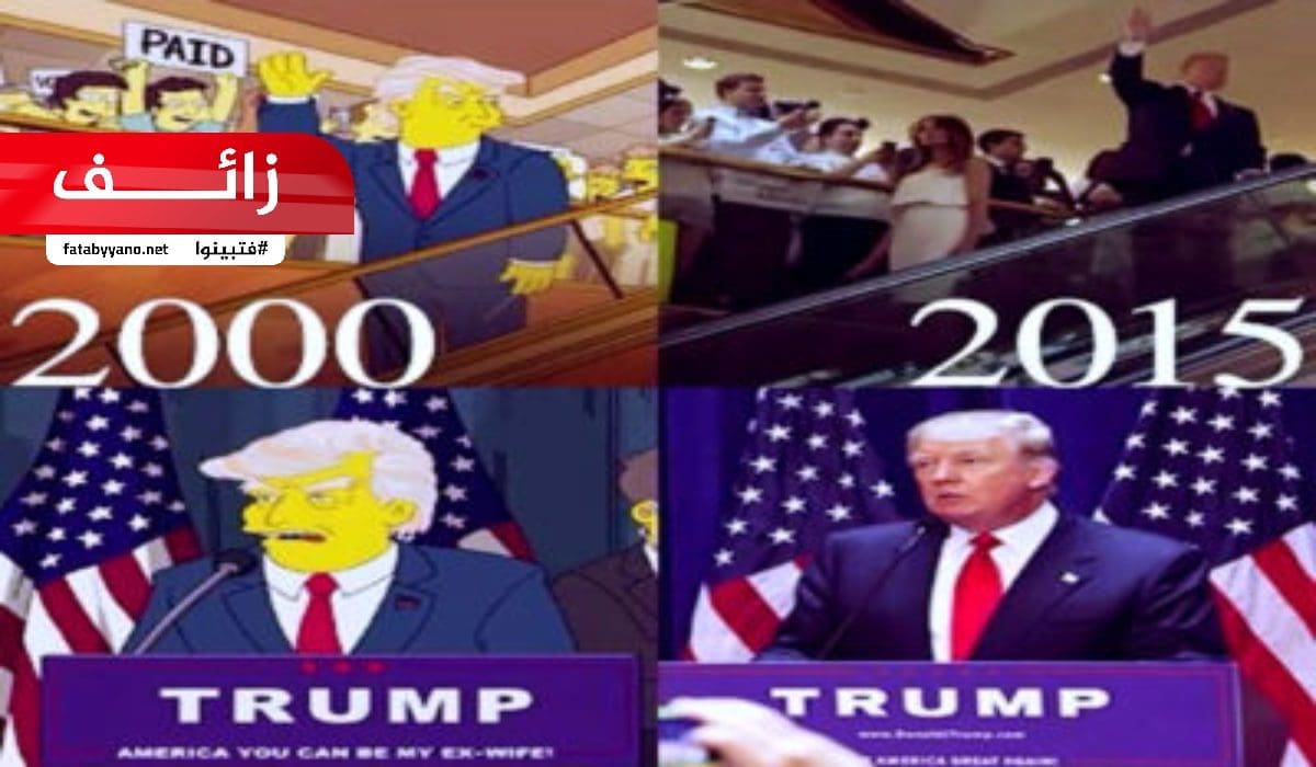 انتشر على مواقع التواصل الاجتماعي ادعاءً يزعم أن مسلسل عائلة سمبسون الشهير قد تنبأ في إحدى حلقاته بترشح الرئيس الأمريكي دونالد ترامب للرئاسة الأمريكية