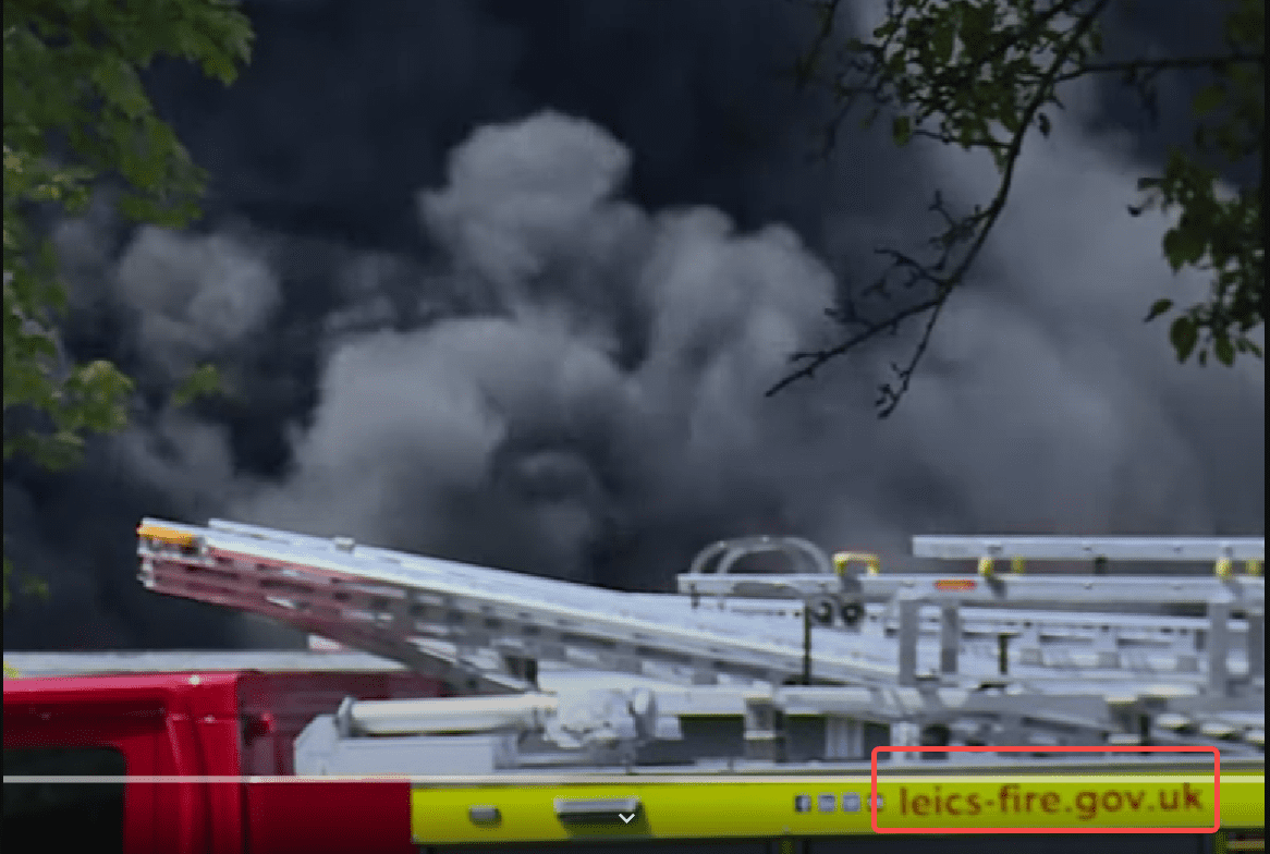 فيما بينت القناة حينها أن الفيديو يصور حريقا هائلًا اندلع في مبنى لتخزين المستندات في ليستر، بريطانيا، حيث تم استدعاء رجال الإطفاء من 10 مراكز مختلفة إلى مكان الحادث.
