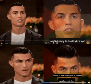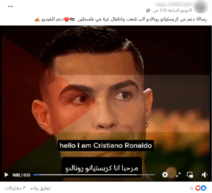 حيث تم إزالة الحديث الأصلي لرونالدو واستخدام إحدى تقنيات الذكاء الاصطناعي بإضافة حديث آخر بصوت رونالدو يظهر أنه كان يتحدث عن غزة.