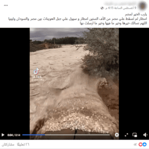 في هذا السياق، تناقل ناشطون على فيسبوك فيديو يدعون أنه يصور سيولًا في منطقة جبل العوينات بين مصر والسودان،