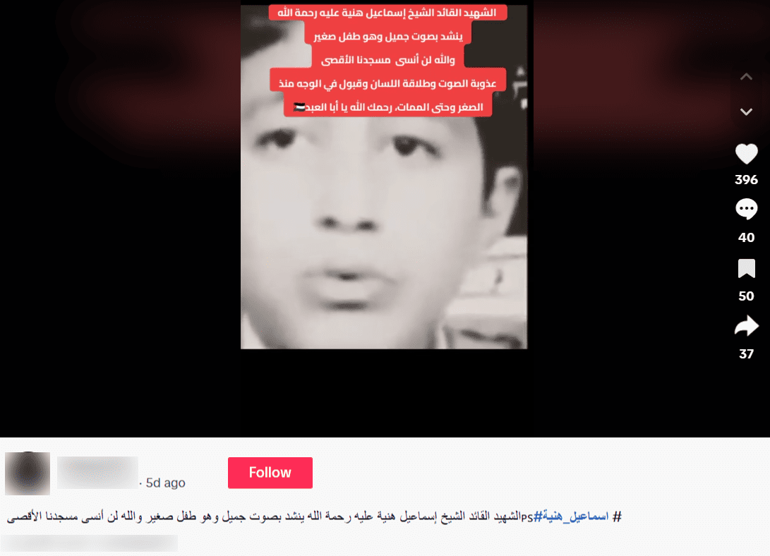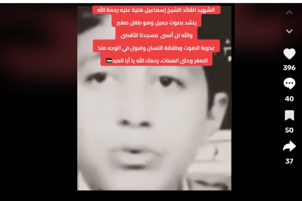 هذا المنشد الظاهر في المقطع هو أحمد سعد وليس إسماعيل هنيّة في طفولته