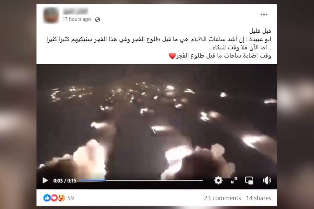 فيما لم يتسنَّ لفريق فتبينوا التحقق من سياق المقطع الأصلي وتاريخه بالتحديد إلا أن تداوله منذ عام 2018 ينفي أن يكون له علاقة بالحرب الجارية منذ 7 أكتوبر 2023.