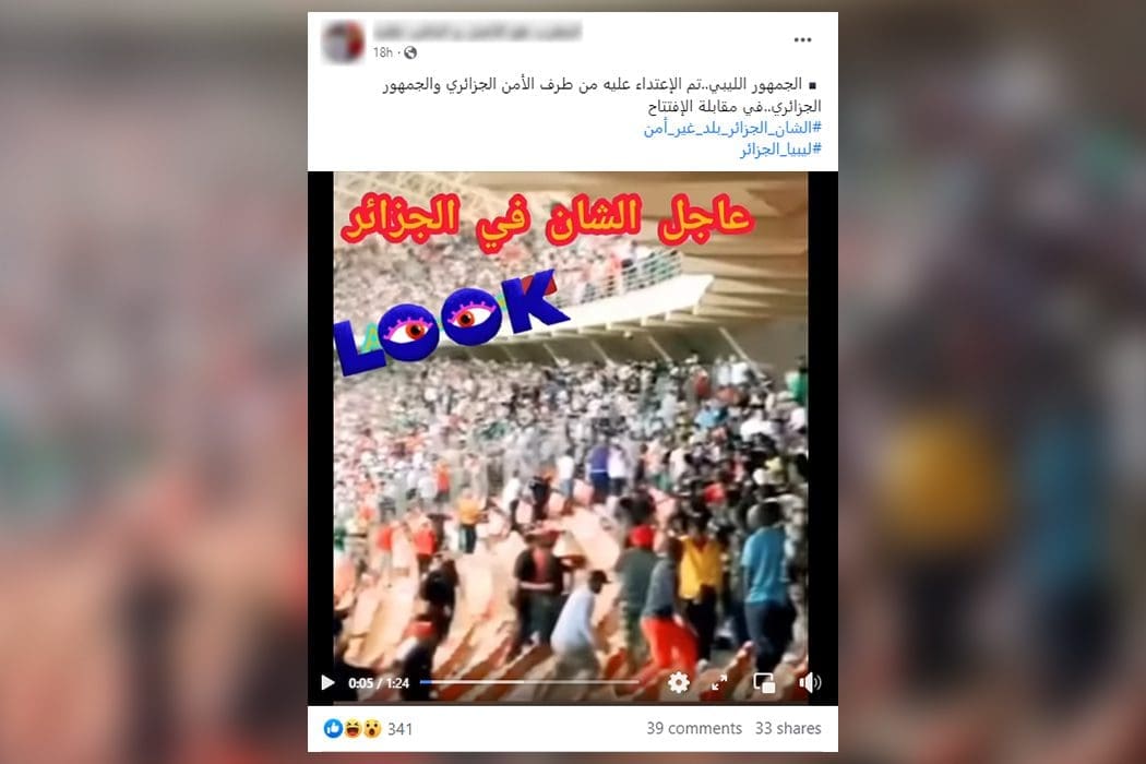 هذا المقطع قديم ومتداول منذ عام 2022، ولا يبين اعتداء الأمن الجزائري على الجمهور الليبي