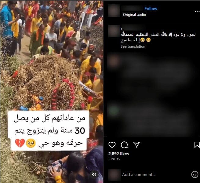 تناقل ناشطون على مواقع التواصل مقطعاً يدعي ناشروه أنه يظهر حرق أشخاص في الهند وهم أحياء لأنهم بلغوا سن الثلاثين دون زواج، فما حقيقة هذا المقطع؟ تابع المقال الآتي..