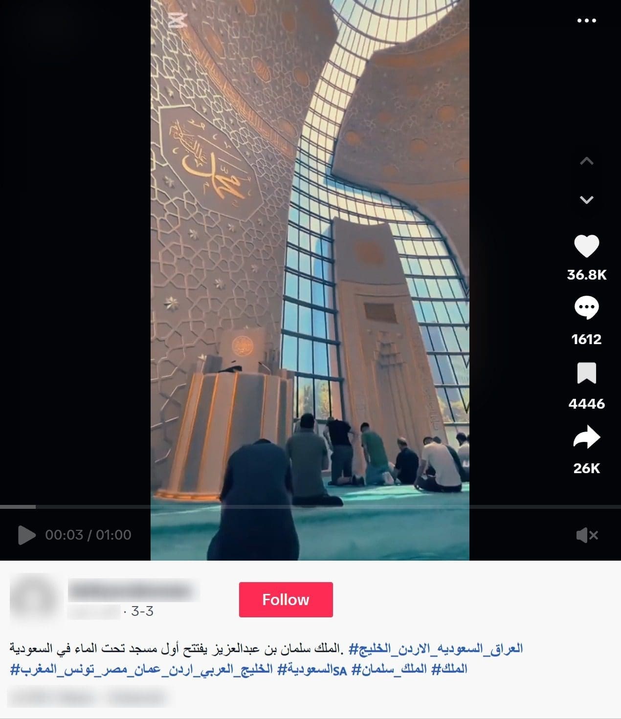 هذا المقطع يصور عدة مساجد في ألمانيا، وتركيا، وكازاخستان، ولا يصور افتتاح مسجد تحت الماء في السعودية